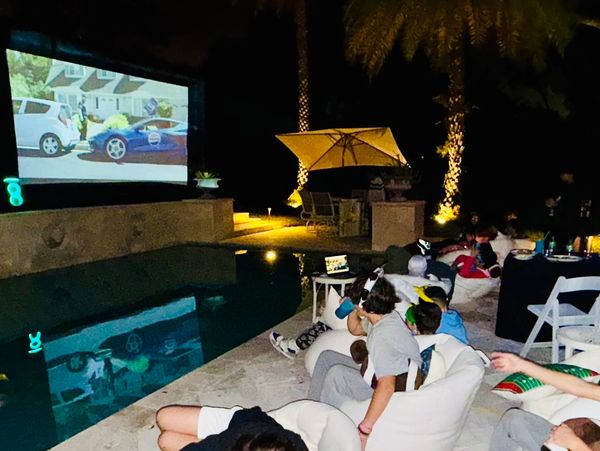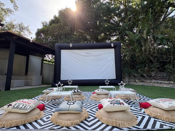 Turn your backyard into a lavish movie night retreat. Complete with stylish accents, our setup creates a cozy ambiance perfect for enjoying movies under the stars with family, friends, and loved ones.